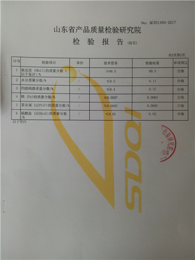 2017氯化铵第三方山东省产品质量检验研究院检验报告