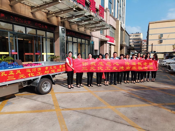 66位老人,66份礼物,15个人的爱心汇聚成了这次见面。三元化工营销团队提前一天就开始准备给老人们的节日礼品,亲手包装好了每一份手提袋。一大早所有员工着装整齐踏上了这次的敬老之旅。
