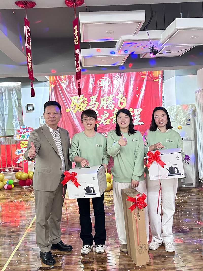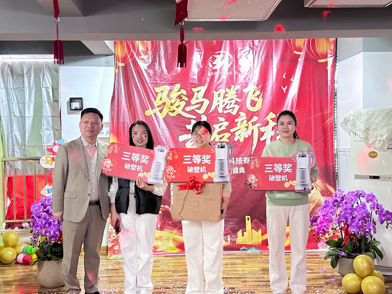 文艺表演间隙,激动人心的抽奖环节如期而至,成为年会的一大亮点,将现场气氛推向一个又一个高潮。随着幸运奖、三等奖、二等奖、一等奖的依次抽取,一位位幸运儿相继诞生,破壁机、电视机、智能手机等丰厚奖品逐一送出。这份份沉甸甸的奖品,不仅承载着公司对全体员工的关怀与厚爱,更传递着对大家新一年的美好祝福,让每一位员工都真切感受到了三元化工这个大家庭的温暖与温情,现场欢呼声、喝彩声不绝于耳,大家共同分享着这份喜悦与幸运。