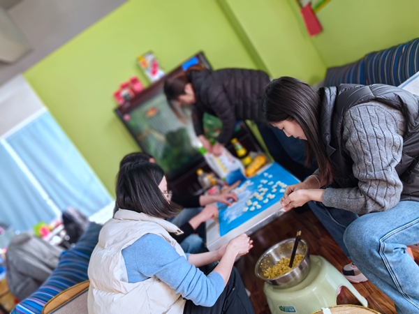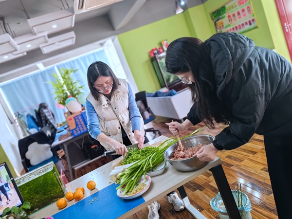 上午9点,活动正式开始,为了在冬至当天吃上热乎乎的水饺,大伙分工协作、各司其职、干劲高昂,和面、调馅儿、擀皮儿,整个活动紧张有序、有条不紊推进,随着时间推移,一个个身材各异的饺子陆陆续续地被包了出来,圆的、扁的、胖的、瘦的。甚至还有“向日葵”、“糖果”。