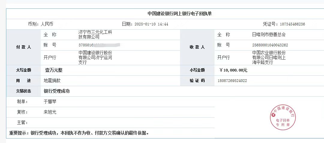 1月10日,bat365在线中国官方网站以实际行动支援地震灾区,通过日喀则市慈善总会捐款人民币壹万元,用于灾后重建和受灾群众的生活保障。该公司负责人表示:“地震无情,人间有爱,一方有难,八方支援,西藏加油!”